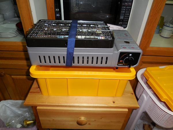 炉端大将にたこ焼きプレートをのせて、あ~楽しい