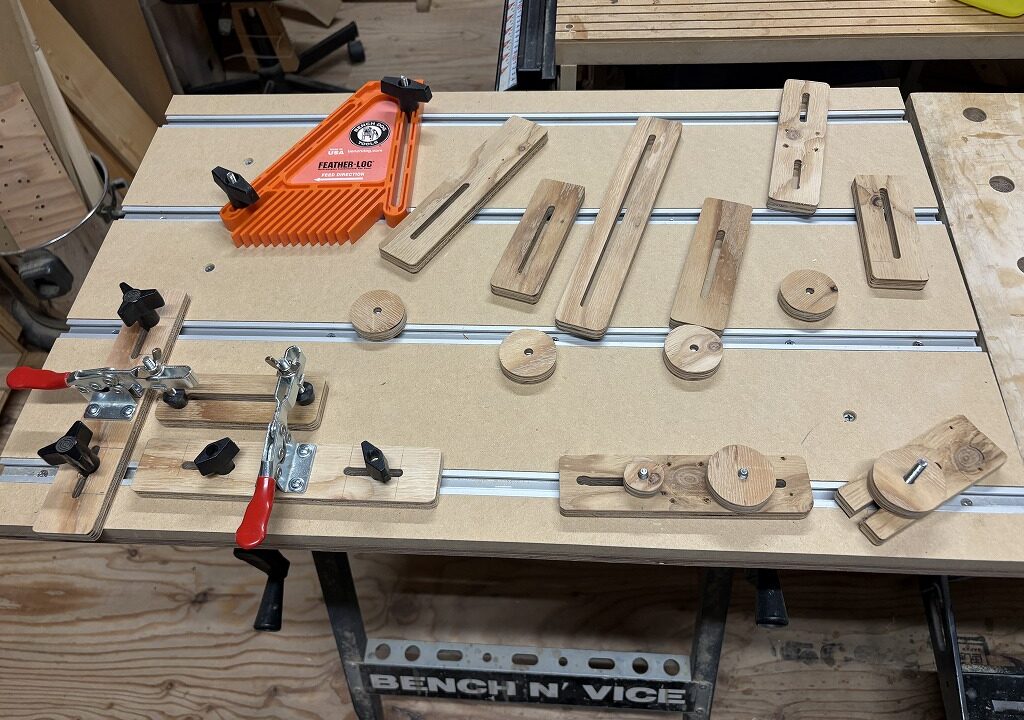 細長い溝を掘ったことで、治具を縦にも横にもセットする事が出来るので、クランプのバリエーションが広がります。